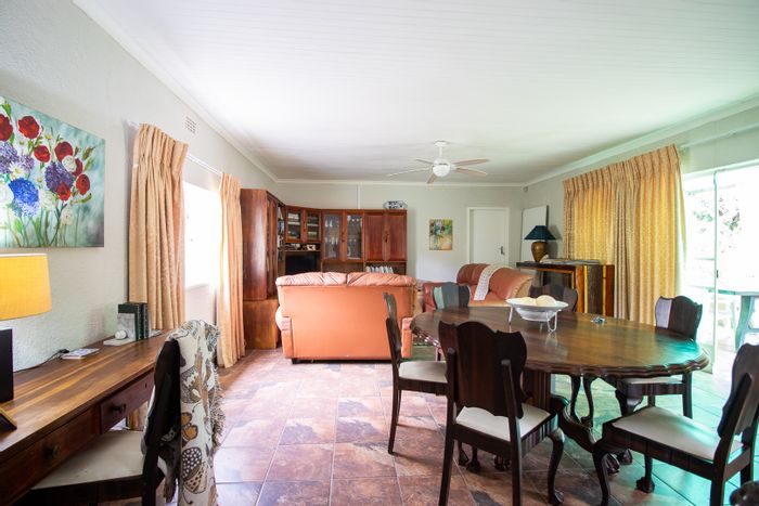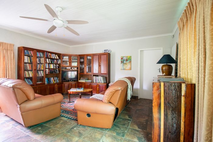 Tranquil country living with panoramic koppie views and expansive grounds, ideal for entertaining around a huge indoor fireplace and patio. Three bedrooms, two baths, double garage.