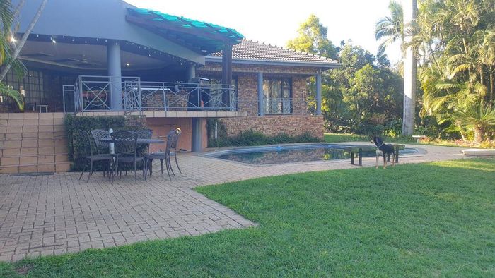 Embrace relaxed country living in White River Central, Mpumalanga — riverside privacy, pool and expansive garden with braai area; five bedrooms, four bathrooms and multiple garages.