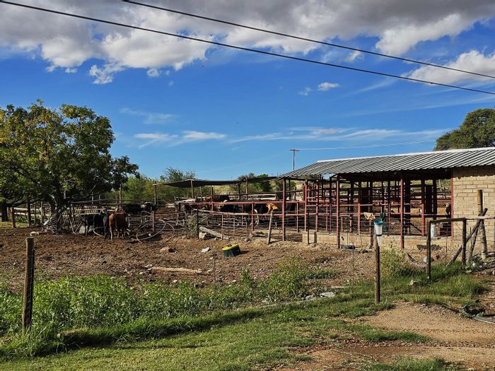 Experience authentic Kalahari grazing life with sweeping dune landscapes and Bak River frontage; stud-quality sheep handling facilities with electronic scale, four-bedroom homestead, two baths, single garage.