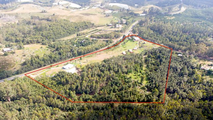 Country-living smallholding between Sedgefield and Knysna on Seven Passes Road, ideal for boutique farming with off-grid 8kVA solar and 140m² packhouse; three bedrooms, one bath.