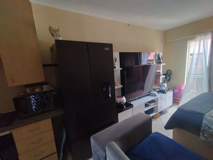 Low-maintenance first-floor studio in Wonderpark Estate, minutes from Wonderpark Shopping Centre and transport; enjoy communal pool and braai area, prepaid electricity, shower bathroom and dedicated parking.