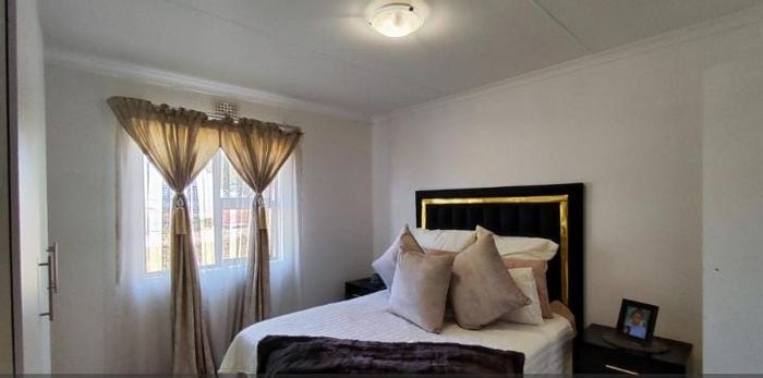 Embrace relaxed suburban living minutes from Alberton centre, with a clubhouse, pool, braai areas and remote workstations — three bedrooms, two bathrooms and two covered parking.