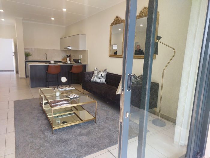 Effortless modern living near OR Tambo Airport in a secure lifestyle estate, gourmet kitchen, pool, gym, biometric access — two bedrooms, two baths.