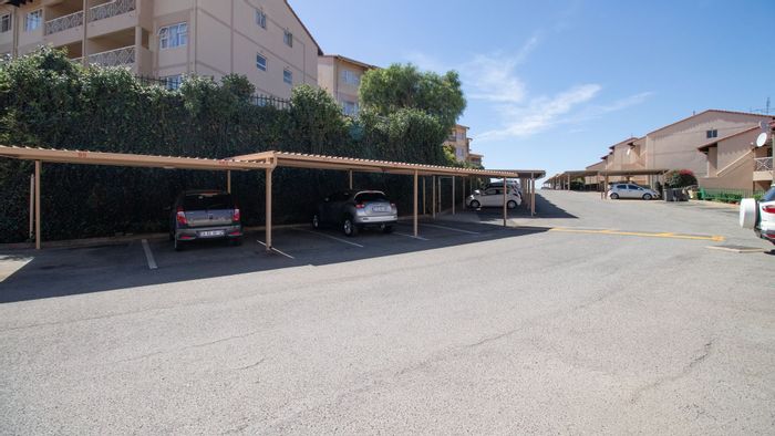 Enjoy secure, easy living in a quiet, well-maintained complex with a remote-controlled entrance and alarm — practical granite kitchen, spacious lounge, two bedrooms, one bathroom, two covered parking bays.
