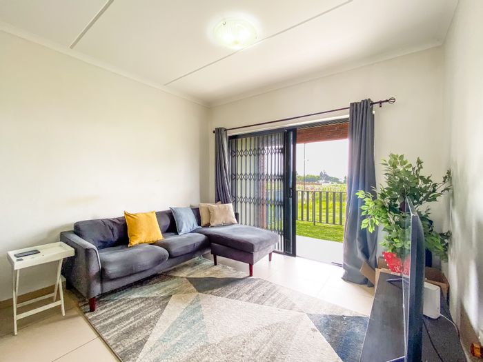 Entertainer's lifestyle in Umthunzi Valley Estate, Carlswald — close to Kyalami Corner and Mall of Africa. Open-plan living with a spacious balcony, two beds, two baths, double parking.