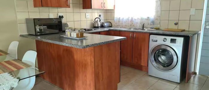 Ground-floor apartment in secure West End complex, minutes from N1 and Mall of Africa. Open-plan kitchen with breakfast nook, private patio to communal yard, pool and BBQ; 2-bed, 1-bath, carport.