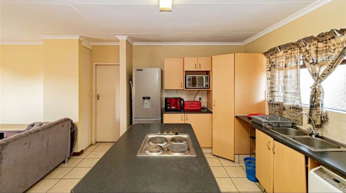 Easy living in Erand Gardens, Midrand — vibrant community moments, walk to shops and transport. Ground-floor apartment with modern kitchen, communal pool and garden; two bedrooms, single garage.