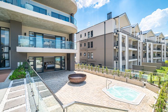 Relaxed city-living in Carlswald, Midrand's Walford Estate with shops and schools nearby; first-floor apartment featuring a high-end kitchen, balcony for entertaining, and infinity pool. Three bedrooms, two baths.