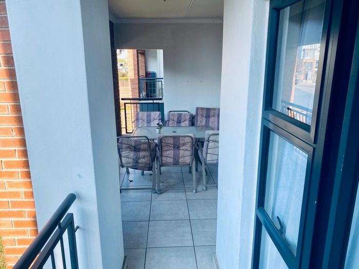 Resort-style living in Pretoria East with lagoon access and a private balcony — modern fitted kitchen and two bedrooms, two baths plus two covered parking bays.
