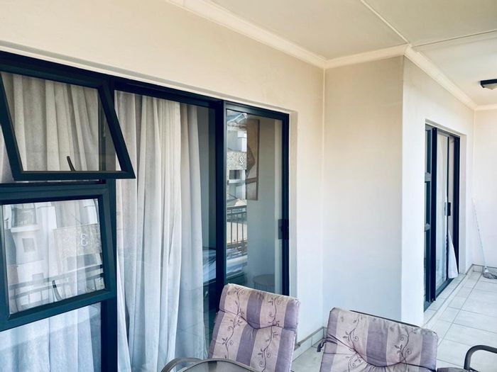 Entertainer's penthouse in Pretoria East, minutes from major routes and amenities, featuring a double balcony with complex views and modern kitchen — three bedrooms, two bathrooms, two covered carports.