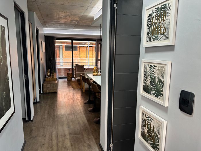 Industrial-chic Menlo Park living with high-volume ceilings and exposed brick, private entrance and built-in braai — close to top schools, Brooklyn Mall and Menlyn. Two beds, two baths.