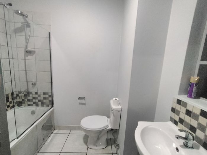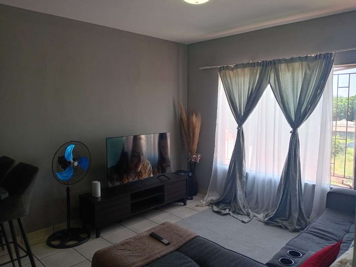 Urban convenience in Pretoria North CBD, steps from shops, schools and transport — open-plan kitchen flowing into the lounge for easy entertaining. Two bedrooms, one bath, covered and open parking.