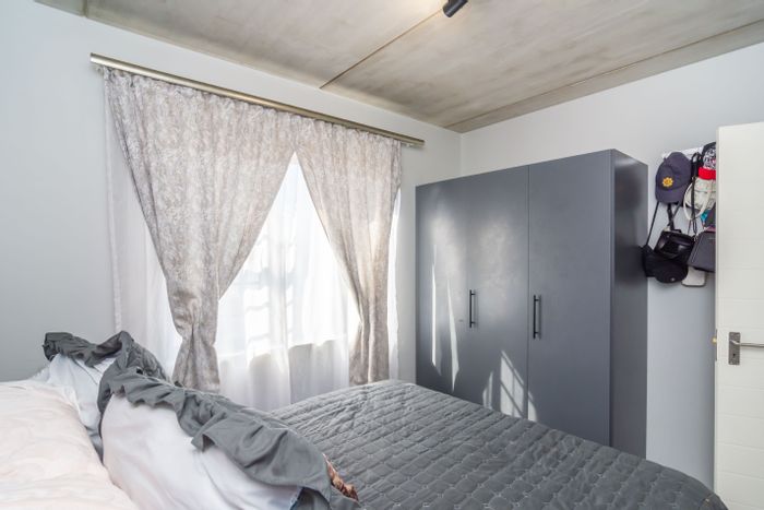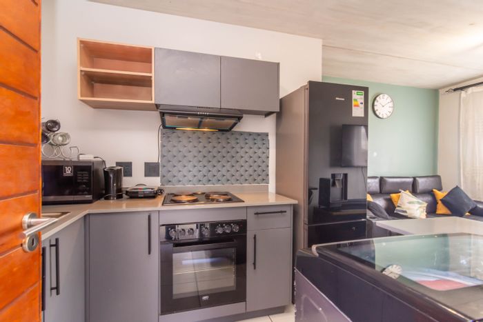 Kickstart homeownership with effortless urban living in Isiqalo Esisha, Fleurhof — sunlit open-plan kitchen and lounge, secure access-controlled complex near schools and shops; two beds, one bath, parking.