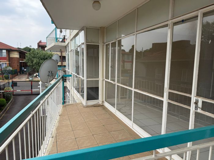 Live steps from public transport, shops and parks in Florida, Gauteng — a vacant two-bedroom, one-bath apartment with parquet floors, private courtyard and one parking space, ready to renovate.