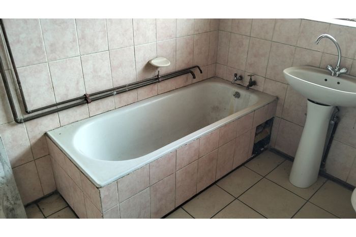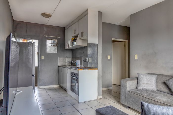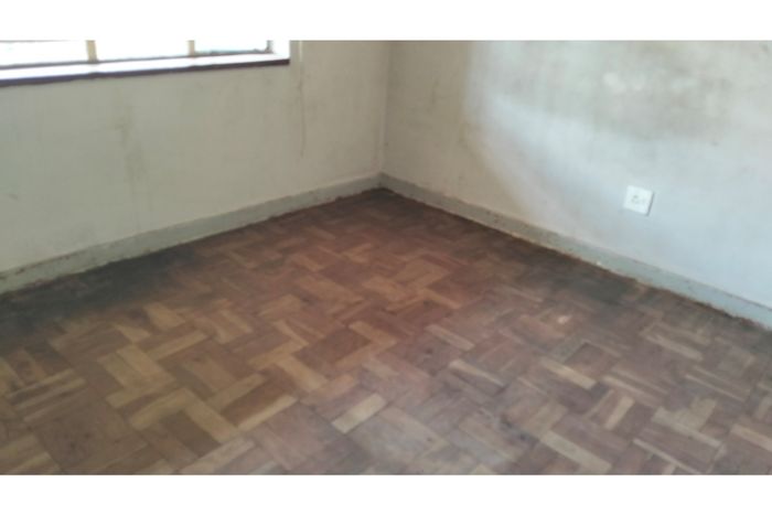 Live steps from public transport, shops and parks in Florida, Gauteng — a vacant two-bedroom, one-bath apartment with parquet floors, private courtyard and one parking space, ready to renovate.