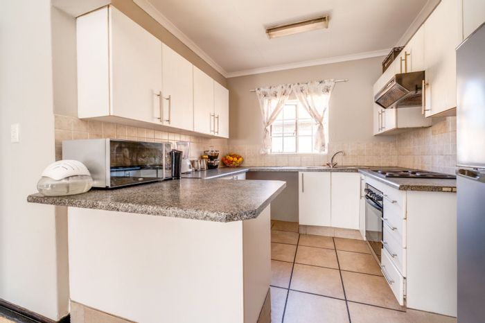 Entertain year‑round from a closed patio with built‑in braai and stacker doors in Weltevreden Park; granite kitchen, communal pool, pet-friendly garden — 3 beds, 2 baths.