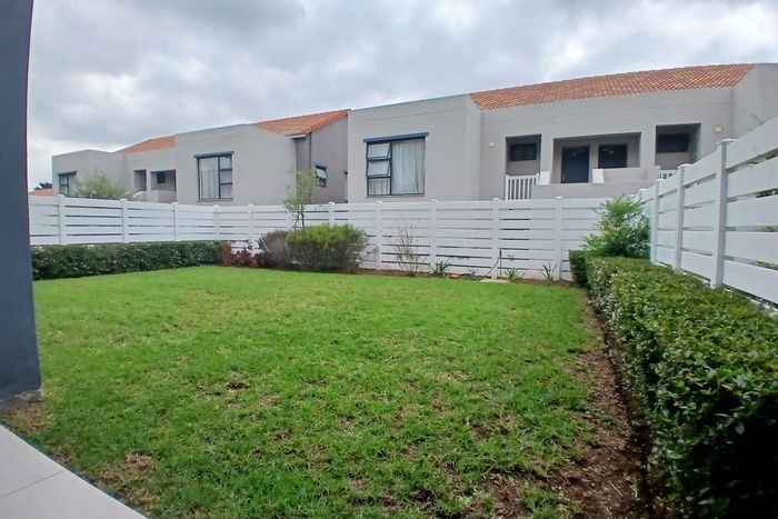 Resort-style living in Aquila with pools, tennis courts and clubhouse — minutes from Fourways Mall, Montecasino and Lanseria. Open-plan kitchen and covered patio with garden; two bedrooms, two parking.