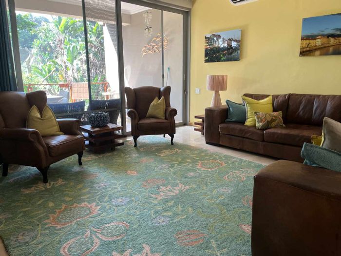 Resort-style Zimbali living with world-class amenities and golf-course panoramas from a top-floor condo; modern gas kitchen, light-filled open plan and AC throughout. Four beds, three baths, single garage.