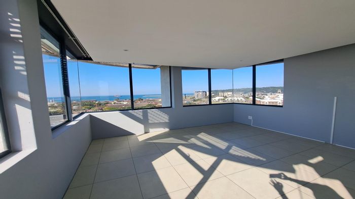 Wake to panoramic canal, beach and ocean views from this double-level duplex in Umhlanga; enjoy concertina glass doors opening to an enclosed veranda and private viewing balconies.