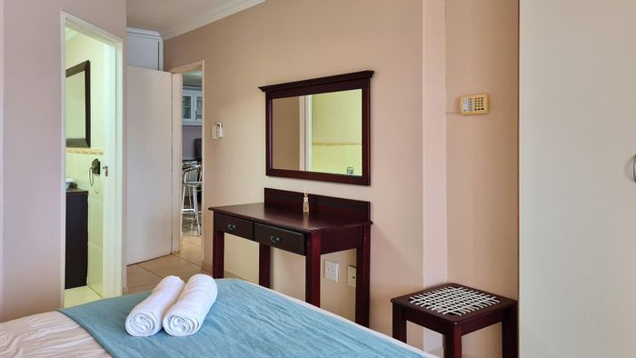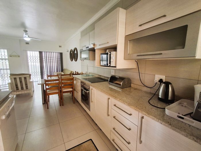 Beachside South Coast living in Uvongo — walk to the shore, soak in the communal pool and enjoy sea-view braai on the patio. Furnished, two bedrooms, two bathrooms, undercover double parking.