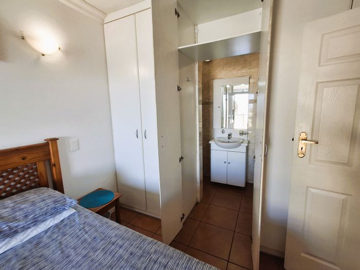 Resort-style ground-floor living with pool and tennis-court views, plus communal built-in braais. Fully furnished two-bedroom, one-bath unit with undercover and open parking, borehole water and 24hr security.