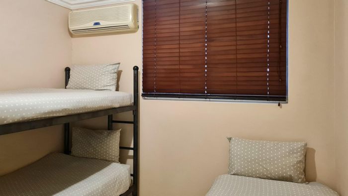 Enjoy true beachside living in Margate — 500 steps to the main beach, ground-floor privacy with lush communal garden and enclosed patio for ocean-view braais; four bedrooms, two bathrooms.