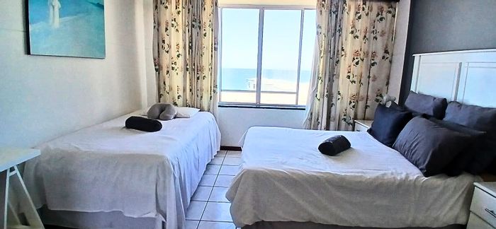 Wake up to beachfront living on Margate's Golden Mile, enjoying panoramic sea views from an expansive patio, fully furnished open-plan interior, modern granite kitchen, three bedrooms and two baths.