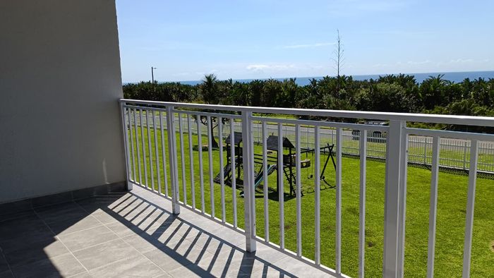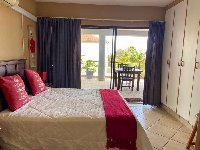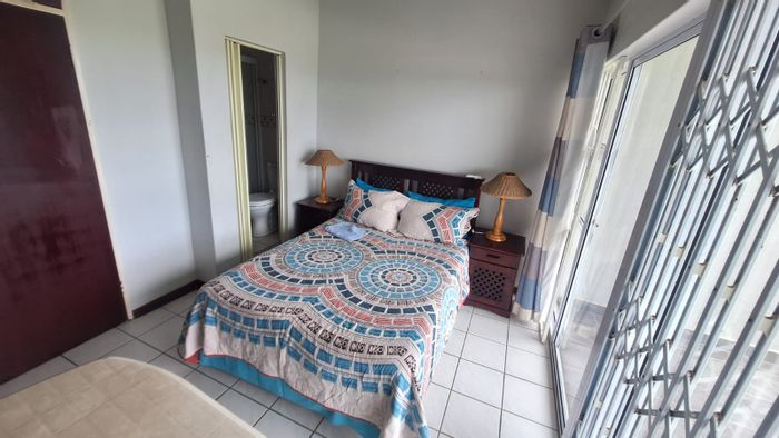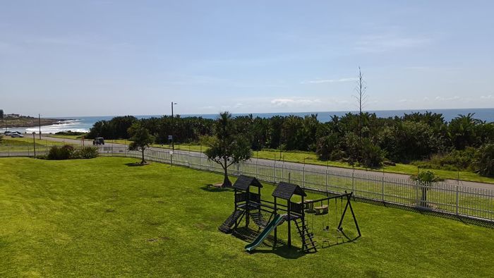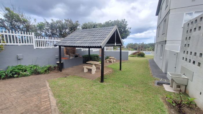 Relaxed coastal living steps from Manaba Beach, with balcony braai and ocean views — communal pool, three bedrooms, two bathrooms and one covered parking bay for convenience.