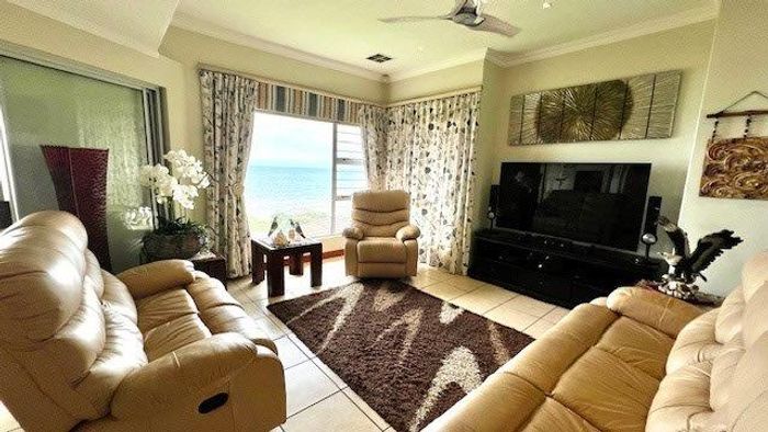 Three-bedroom, two-bathroom ground floor apartment in Uvongo, 120 m², with lagoon views and direct beach access.