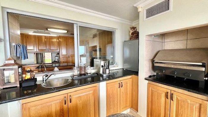 Seaside living with daily ocean sounds and sunset views from a private balcony with built-in braai. Steps from the beach in a secure complex; four bedrooms, two baths, covered parking.
