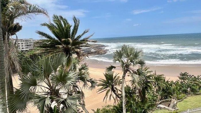 Beachside living in Uvongo, steps from the beach and eateries — open-plan apartment with ocean-view covered balcony, granite kitchen, two pools; fully furnished, three bedrooms, two bathrooms.