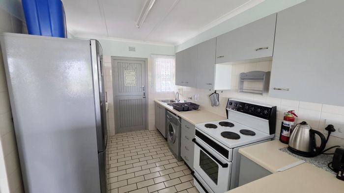 Seaside living 300m from Blue Flag Ramsgate beach — this ground-floor two-bedroom, one-bath unit opens onto a private garden with built-in braai, pet- and wheelchair-friendly.