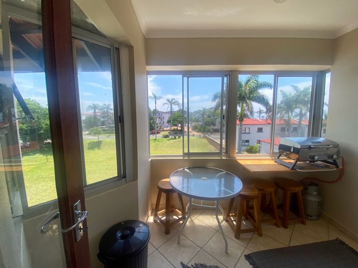 Family-friendly coastal retreat within walking distance of Uvongo Beach, offering partial sea views, a balcony overlooking communal pool and braai area, and two ensuite bedrooms for comfortable living.