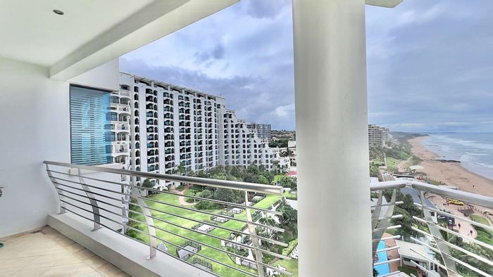 Coastal resort living at PEARL SKY with sweeping sea and inland views, close to Umhlanga and King Shaka Airport. 14m² balcony and resort pool, two-bed, two-bath.