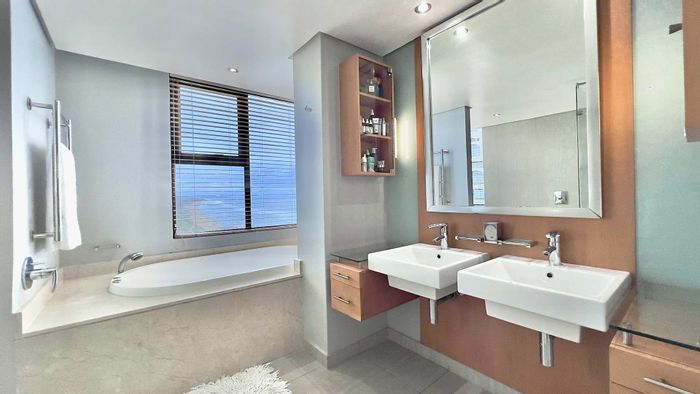 Beachfront lifestyle on Umhlanga's iconic shoreline with panoramic ocean views and direct beach access; heated pools, mall and hotel links, plus two en-suite bedrooms and covered parking.