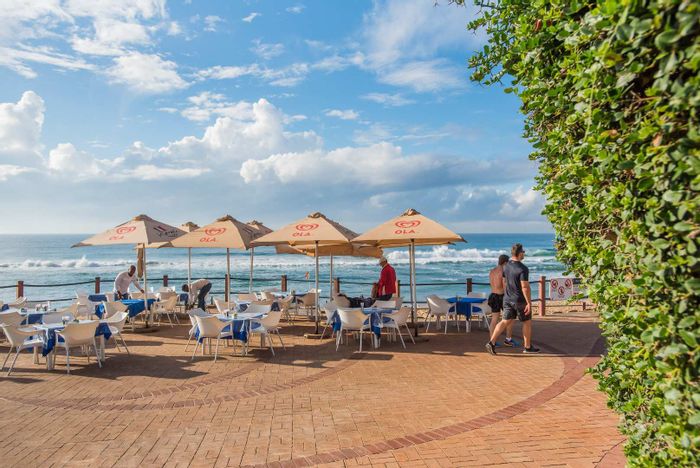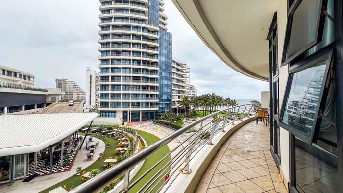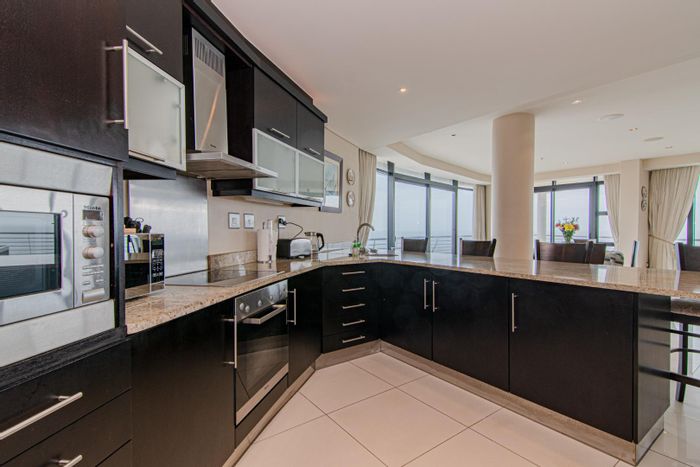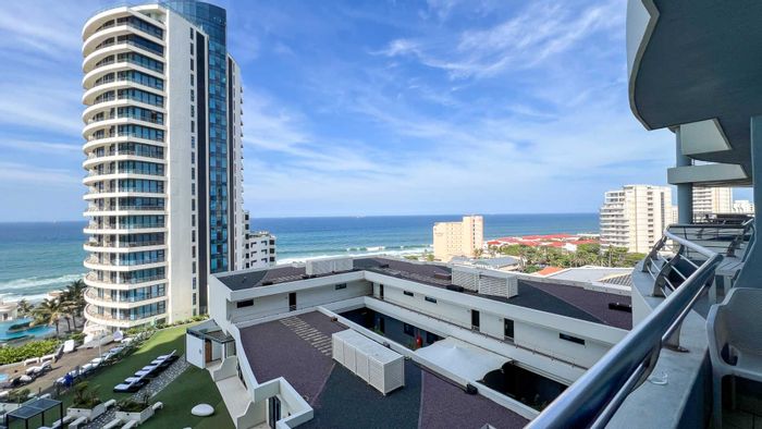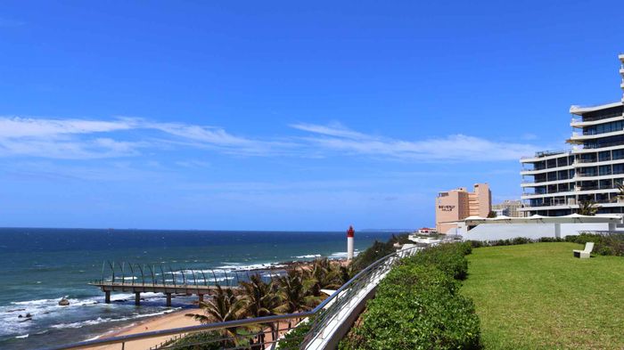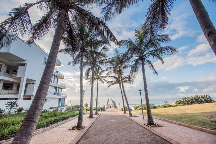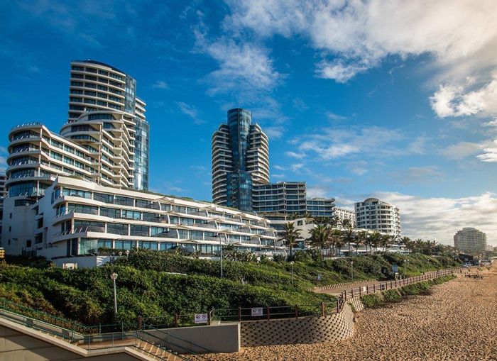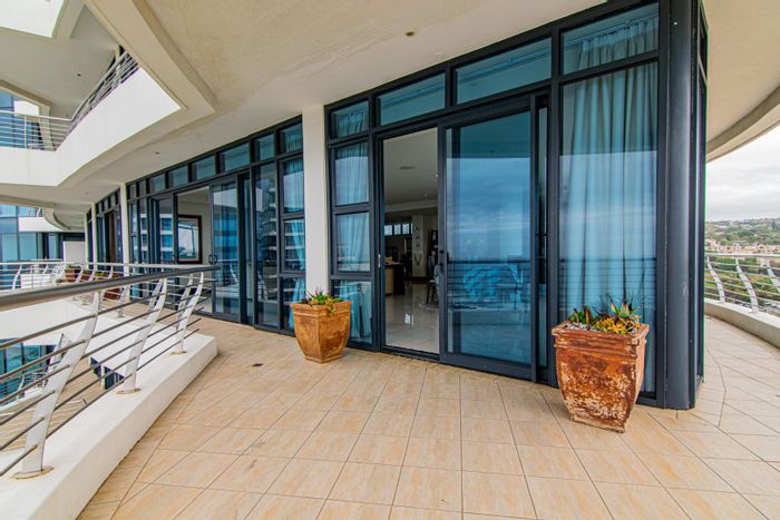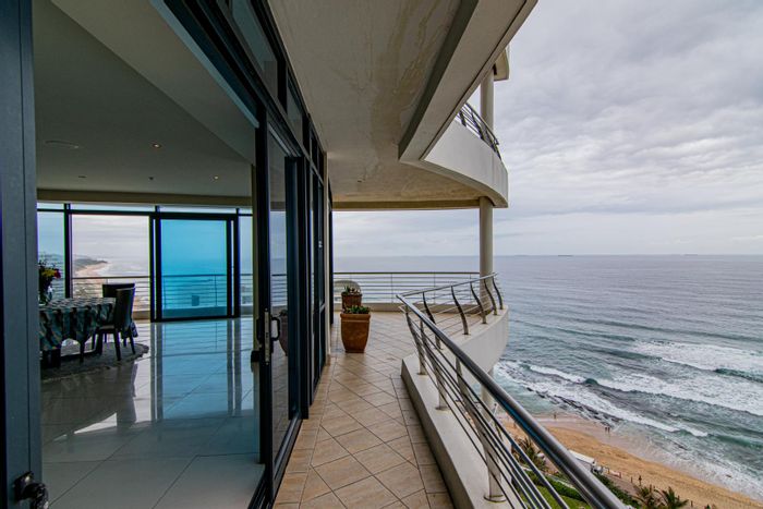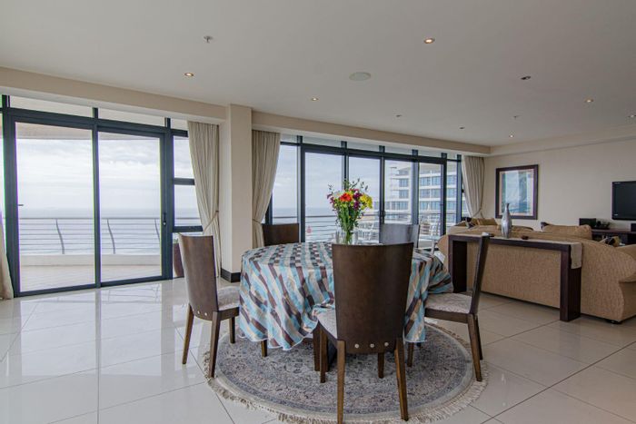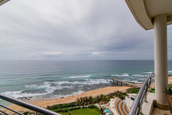 Wake to ocean views on Umhlanga Beach — living opens onto a huge balcony for sunset entertaining, heated pools, direct mall access, 3 en-suite bedrooms and 2 covered parking.