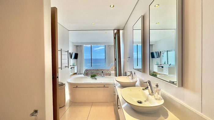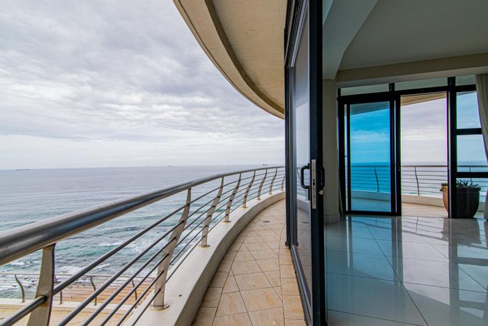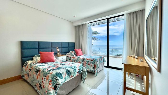 Beachfront lifestyle with sweeping Indian Ocean views, direct access to Umhlanga Beach and promenade, generous balcony linking master and living plus private master retreat. Three bedrooms, three ensuites, two parking.