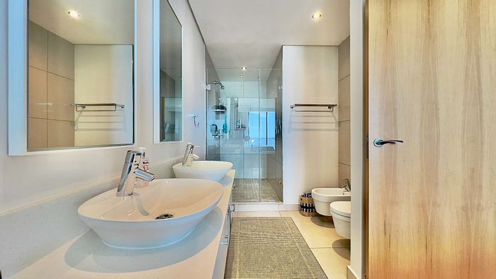Ocean-view apartment in Pearls of Umhlanga, steps from the promenade and Pearls Mall; massive 87m² balcony off both bedrooms, floor-to-ceiling windows, Miele kitchen, 2 beds, 2.5 baths, 2 parking.