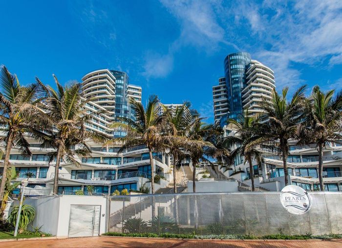 Wake up to sea breezes and sunset promenades in Umhlanga's Pearls, steps from Main Beach; balcony with panoramic Indian Ocean views. Two bedrooms, two baths, covered parking.