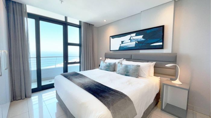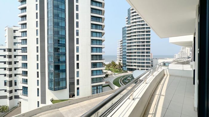 Ocean-view living in Umhlanga with an 11m2 balcony, move-in-ready fully furnished interiors, direct Pearls Mall access and a beach elevator — two bedrooms, two bathrooms, secure parking.