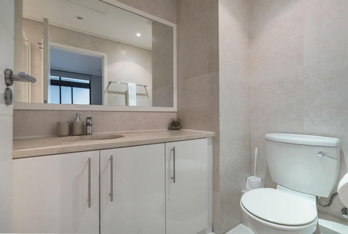 Heart of vibrant Cape Town — popular complex offering 24-hour security, load-shedding-free open-plan living, Airbnb-friendly, storeroom, two bedrooms, two baths and two undercover parking.