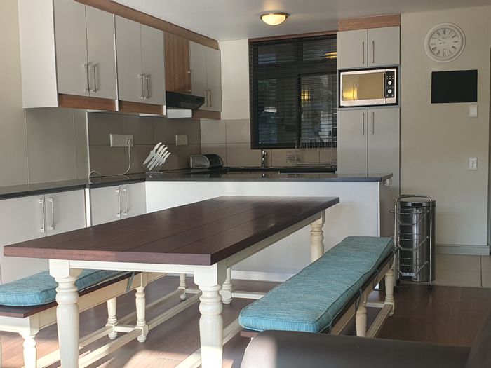 Enjoy modern Blanco living with panoramic Outeniqua Mountain views, steps from shops and cafes, featuring an open-plan Kara Blue kitchen and two bedrooms, one bath, plus covered and open parking.