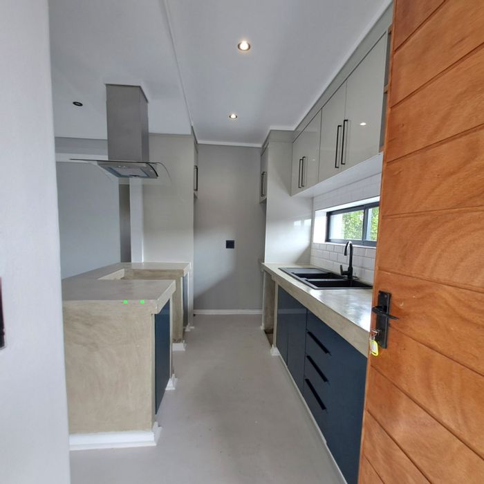 Effortless lock-up-and-go living in Kloofsig Estate, Hansmoeskraal with landscaped green spaces and easy access to George. Open-plan layout, modern kitchen and built-in indoor braai; two bedrooms, two bathrooms, two carports.
