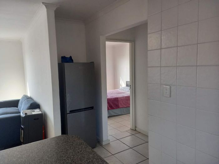 Secure, first-floor apartment in a well-kept complex with 24-hour security and a sunny balcony. Open-plan kitchen and living area; two bedrooms, one bathroom, allocated parking.