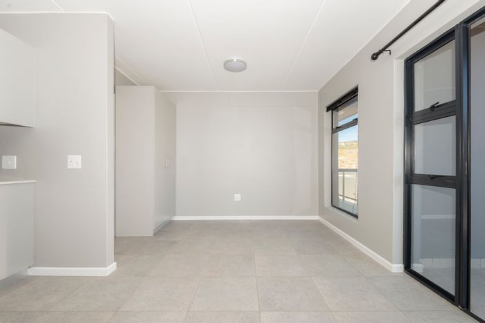 Relaxed lock-up-and-go living in Laguna Lifestyle Village, close-knit community with communal pool and braai — first-floor 1-bedroom with private balcony, en-suite, open-plan kitchen and parking.