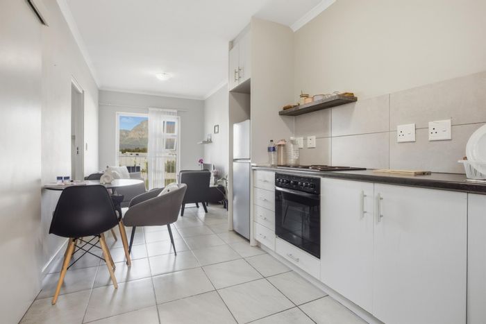 Wake up to Paarl and Franschhoek mountain views from this upper-floor La Vie Estate apartment, with open-plan living, private balcony, modern kitchen, and quick access to N1 and Paarl Mall.