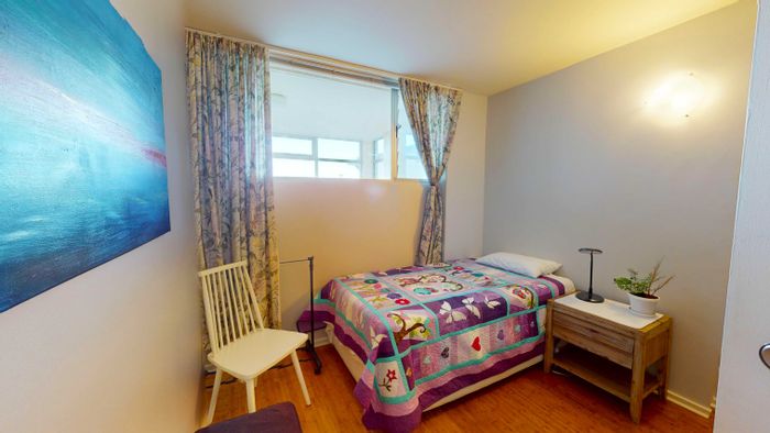 Sunlit 3rd-floor apartment in Monaco Gardens, steps from the beach, offering panoramic views, large windows, communal pool and braai; two bedrooms, one bathroom, and two basement parking bays.