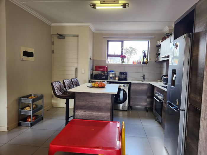 Enjoy secure, family-focused complex living with a clubhouse and pool; second-floor apartment boasts a modern kitchen, private balcony with built-in braai, two beds, two baths and garage.