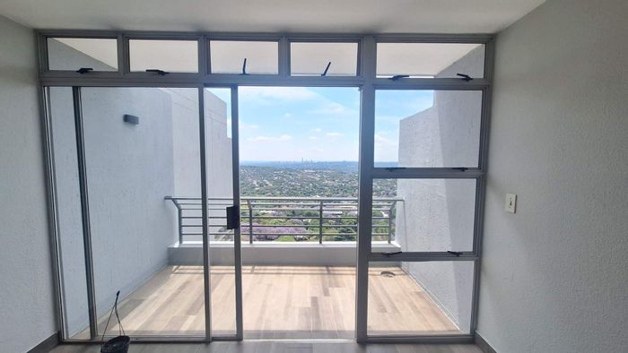 Upscale city living with effortless lock-up-and-go convenience, private balcony overlooking the Johannesburg skyline, open-plan kitchen, parquet floors, one-bedroom, one-bath and covered parking.