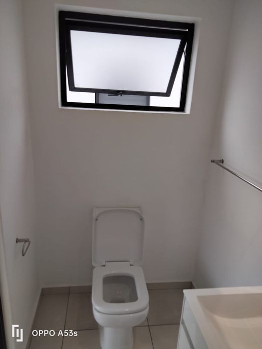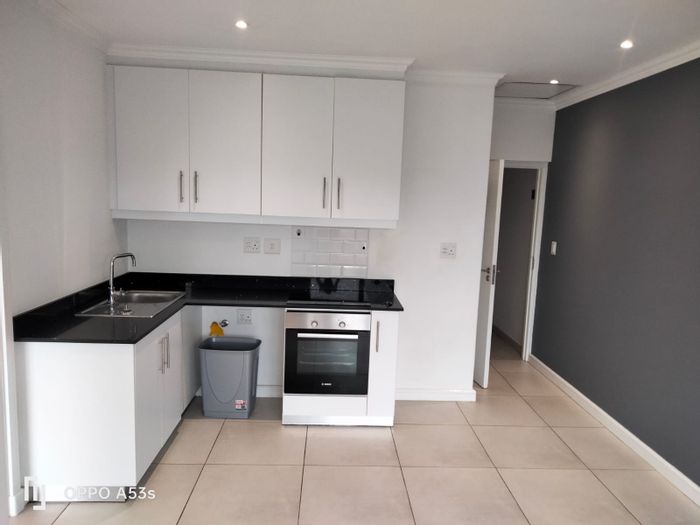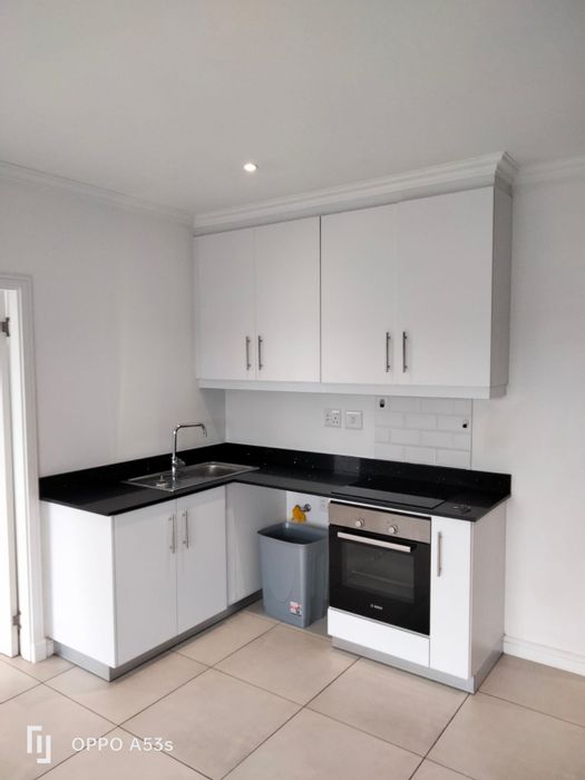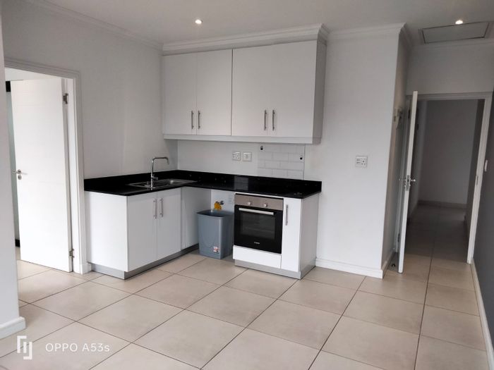 Peaceful, secure area with regular foot patrols; open-plan kitchen flows to lounge, built-in bedroom cupboards, and secure parking for two — three bedrooms, one bathroom.